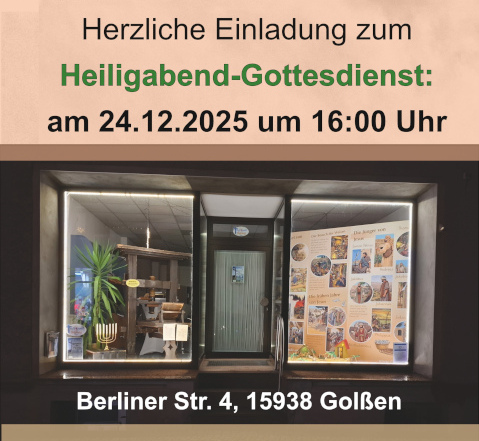 Am 30.11.2025 fällt der Gottesdienst aus, da wir an diesem Wochenende mit einem Stand auf dem Weihnachtsmarkt im Museumsdorf Glashütte sind.